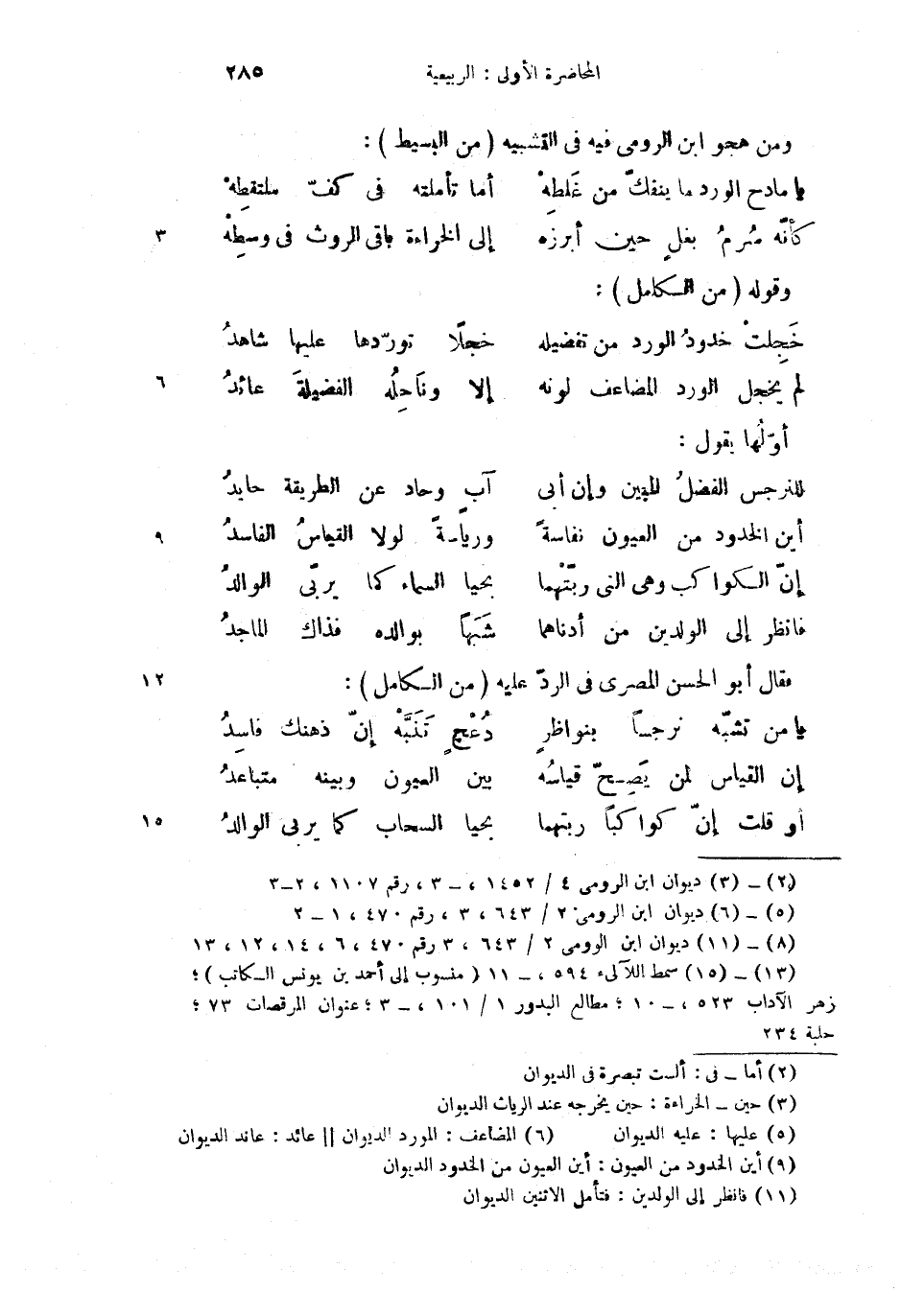 (3) ديوان ابن الرومى 2/ 643،3 رقم 470،6،14،12،13