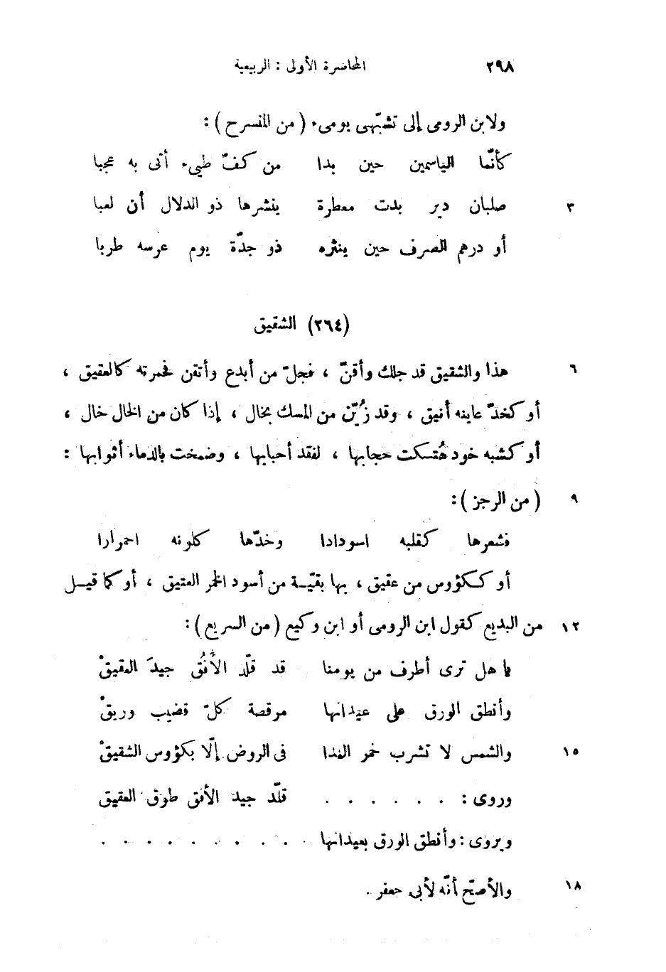 والشمس لا تشرب خمر الندا … فى الروض إلاّ بكؤوس الشقيق