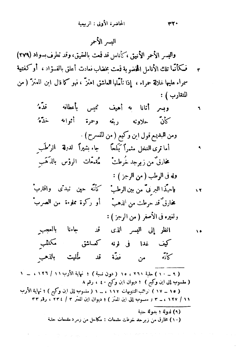 (2) غرائب التنبيهات 112، -1 (منسوب إلى ابن وكيع)؛ نهاية الأرب 11/ 127، -3 (منسوب إلى ابن المعتز)؛ ديوان ابن المعتز 3/ 234، رقم 33