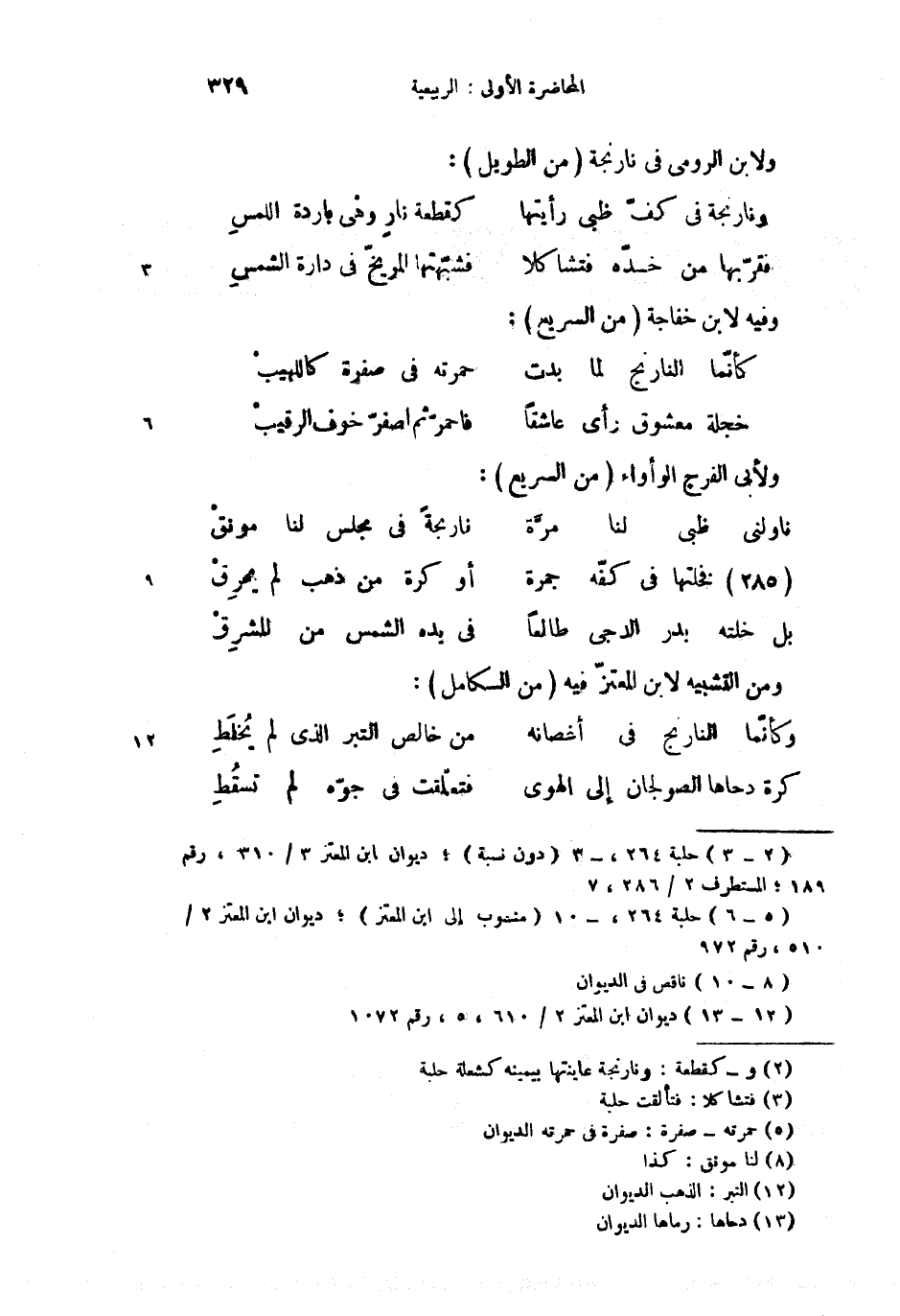 ونارنجة فى كفّ ظبى رأيتها … كقطعة (5) نار وهى باردة اللمس
