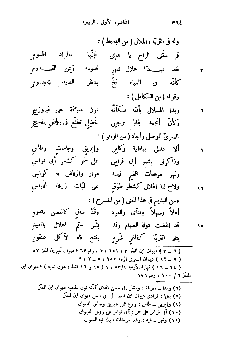 (1) ديوان ابن المعتز 3/ 251،1، رقم 67؛ ديوان تميم بن المعز 87