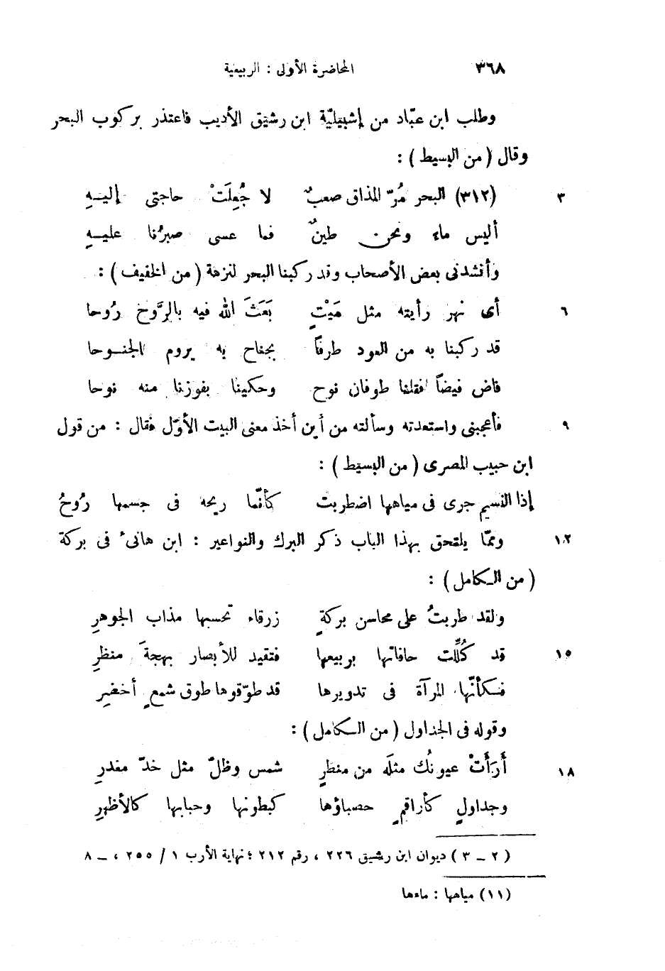 (1) ديوان ابن رشيق 226، رقم 212؛ نهاية الأرب 1/ 255، -8