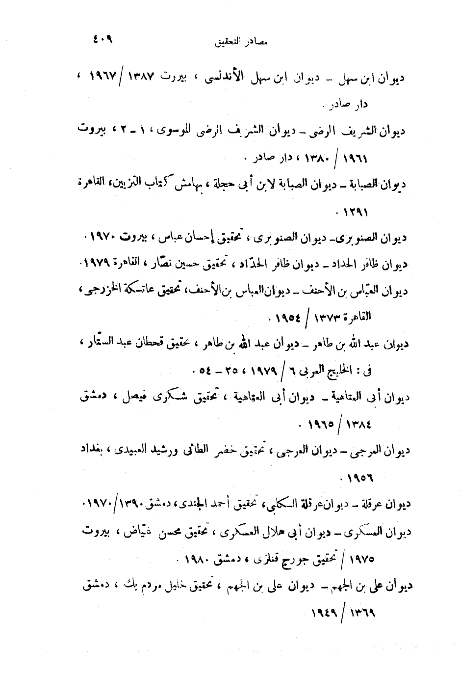 ديوان العرجى-ديوان العرجى، تحقيق خضر الطائى ورشيد العبيدى، بغداد 1956.