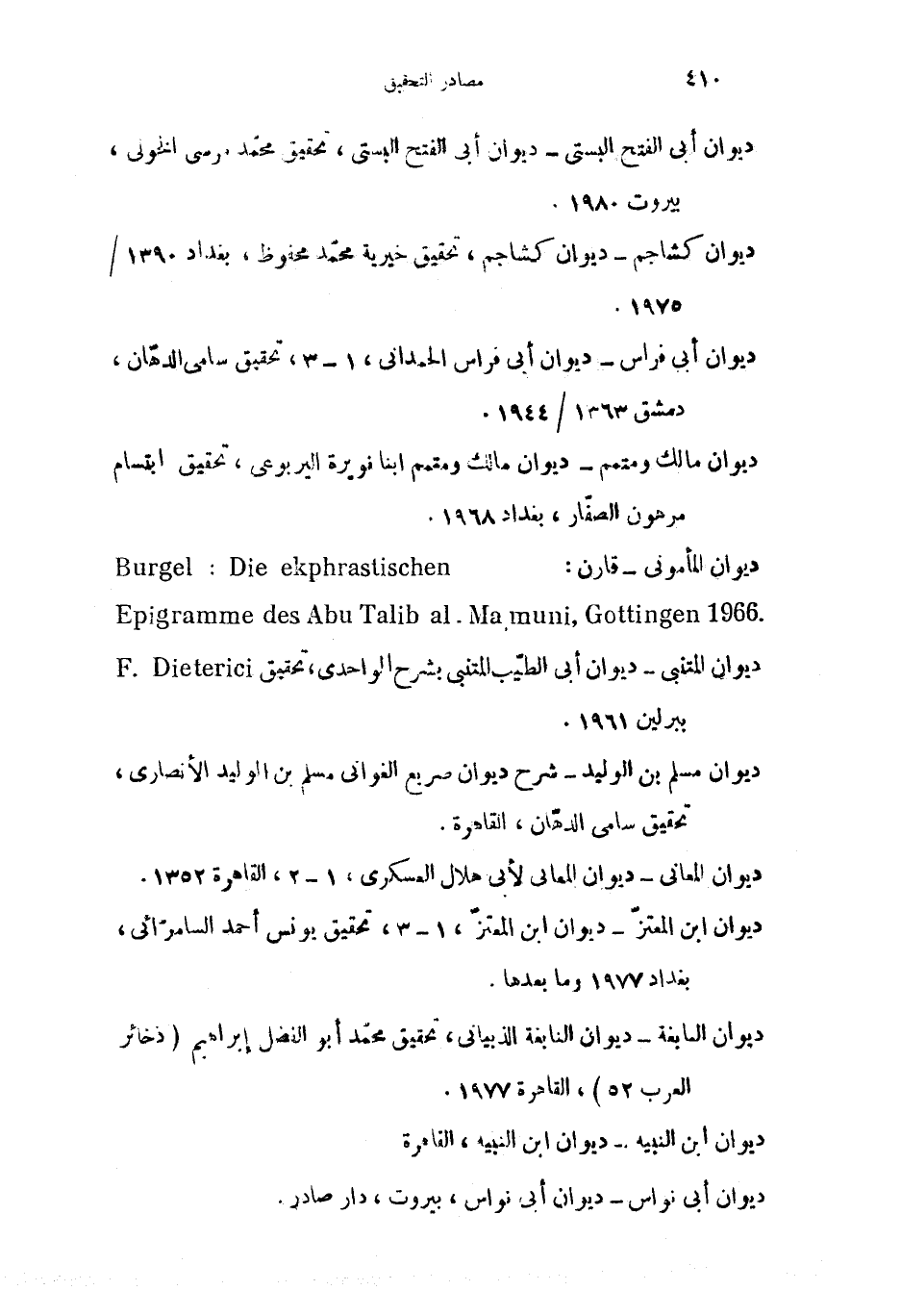 ديوان المتنبى-ديوان أبى الطيّب المتنبى بشرح الواحدى، تحقيق F .Dieterici ببرلين 1961.