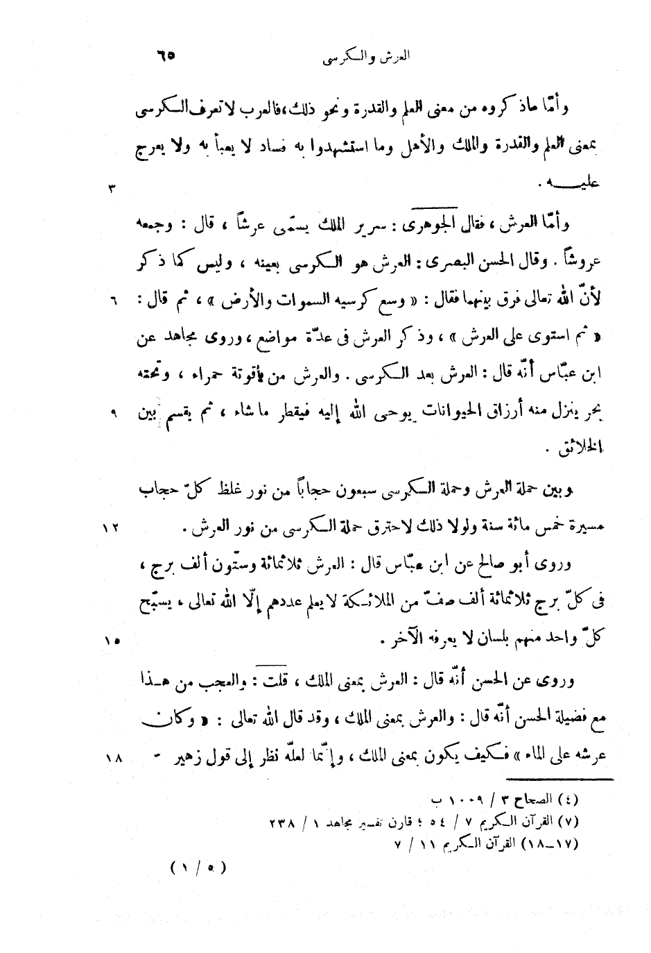 وأمّا ما ذكروه من معنى العلم والقدرة ونحو ذلك، فالعرب لا تعرف الكرسى بمعنى العلم والقدرة والملك والأهل وما استشهدوا به فساد لا يعبأ به ولا يعرج عليه.