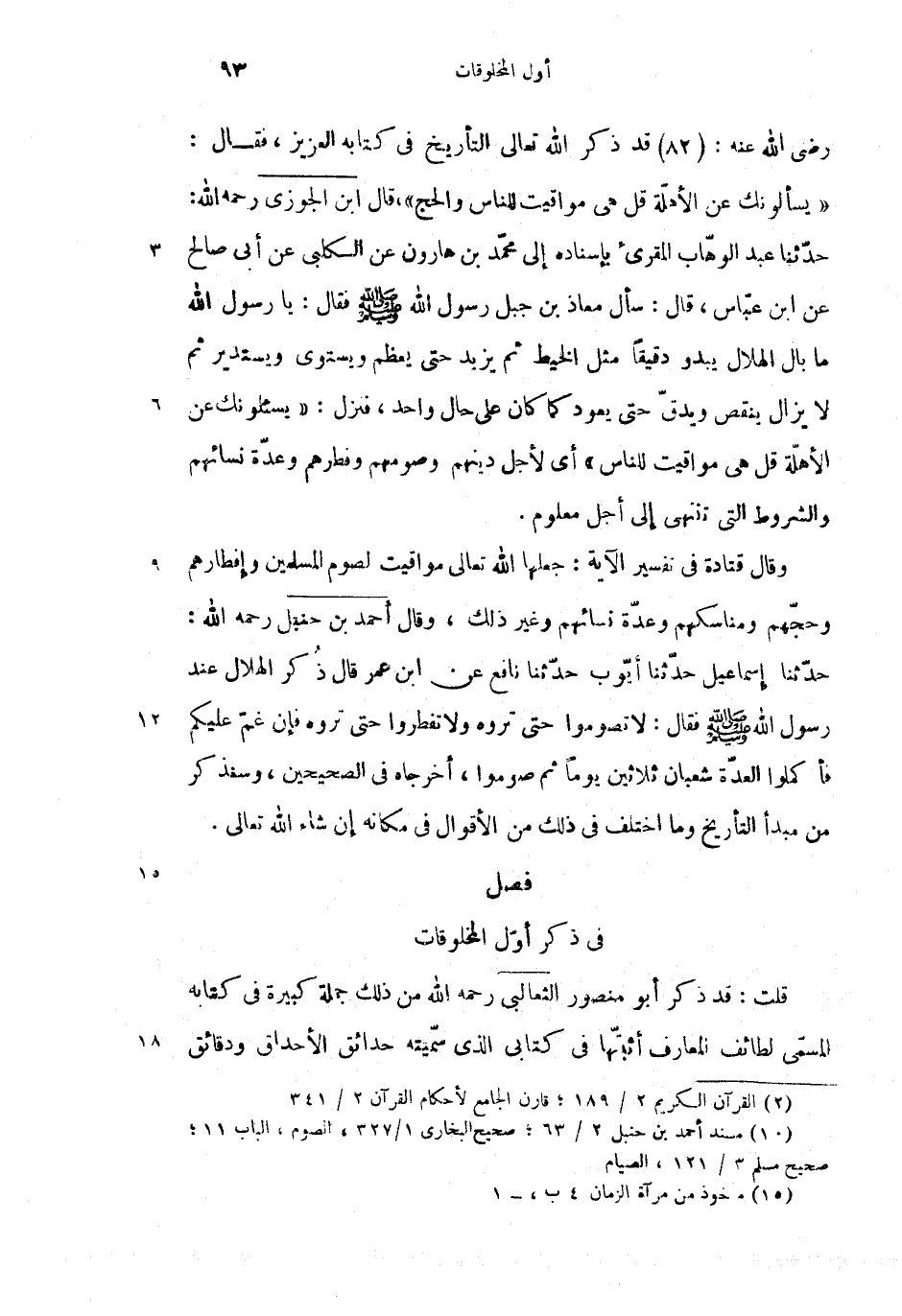 وقال قتادة فى تفسير الآية: جعلها الله تعالى مواقيت لصوم المسلمين وإفطارهم وحجّهم ومناسكهم وعدّة نسائهم وغير ذلك، وقال أحمد بن حنبل رحمه الله: (2)