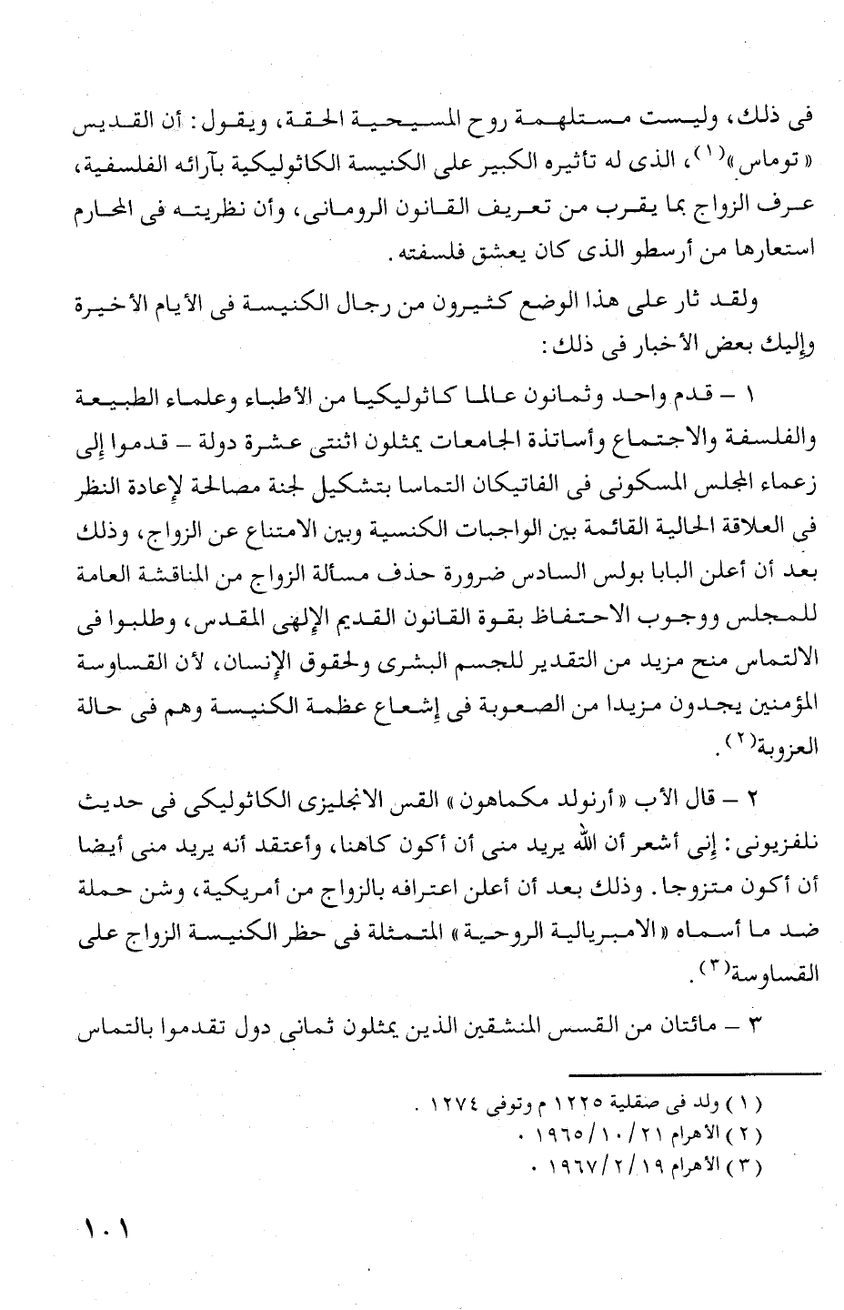 فى العلاقة الحالية القائمة بين الواجبات الكنسية وبين الامتناع عن الزواج، وذلك