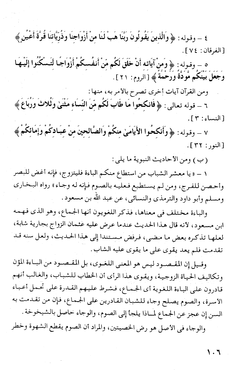 ا - " يا معشر الشباب من استطاع منكم الباءة فليتزوج، فإنه أغضى للبصر