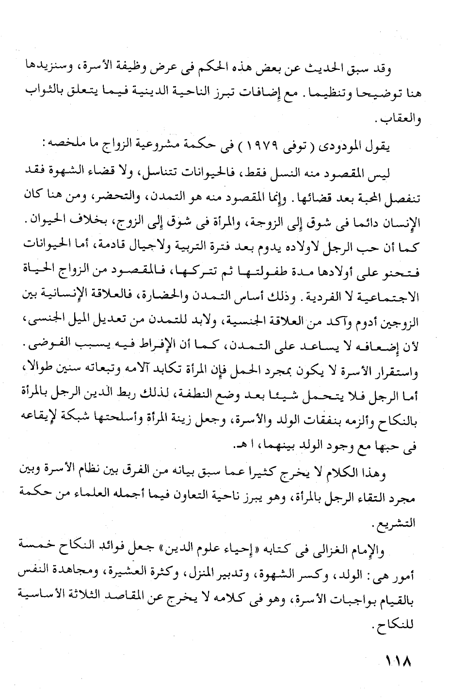 يقول المودودى (توفى 979 1) فى حكمة مشروعية الزواج ما ملخصه: