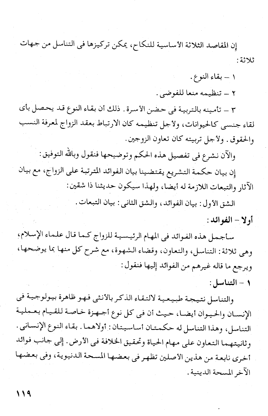 إن المقاصد الثلاثة الأ ساسية للنكاح، يمكن تركيزها فى التناسل من جهات