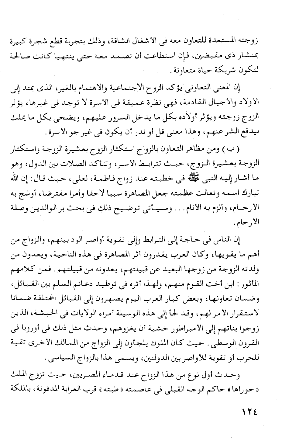 (ب) ومن مظاهر التعاون بالزواج استكثار الزوج بعشيرة الزوجة واستكثار