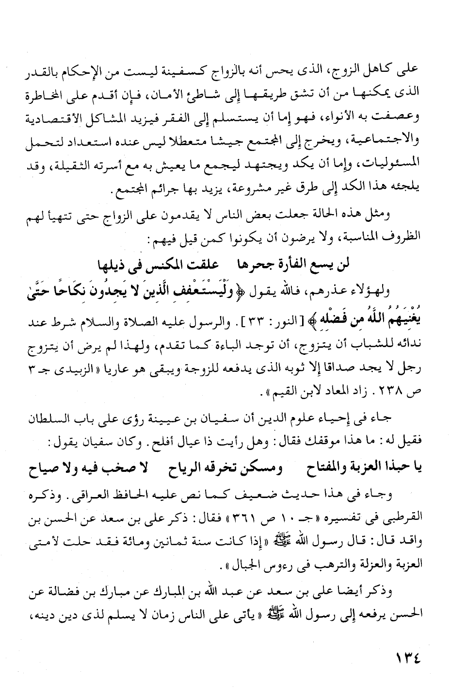 على كاهل الزوج، الذى يحصر أنه بالزواج كسفينة ليمست من الإحكام بالقدر