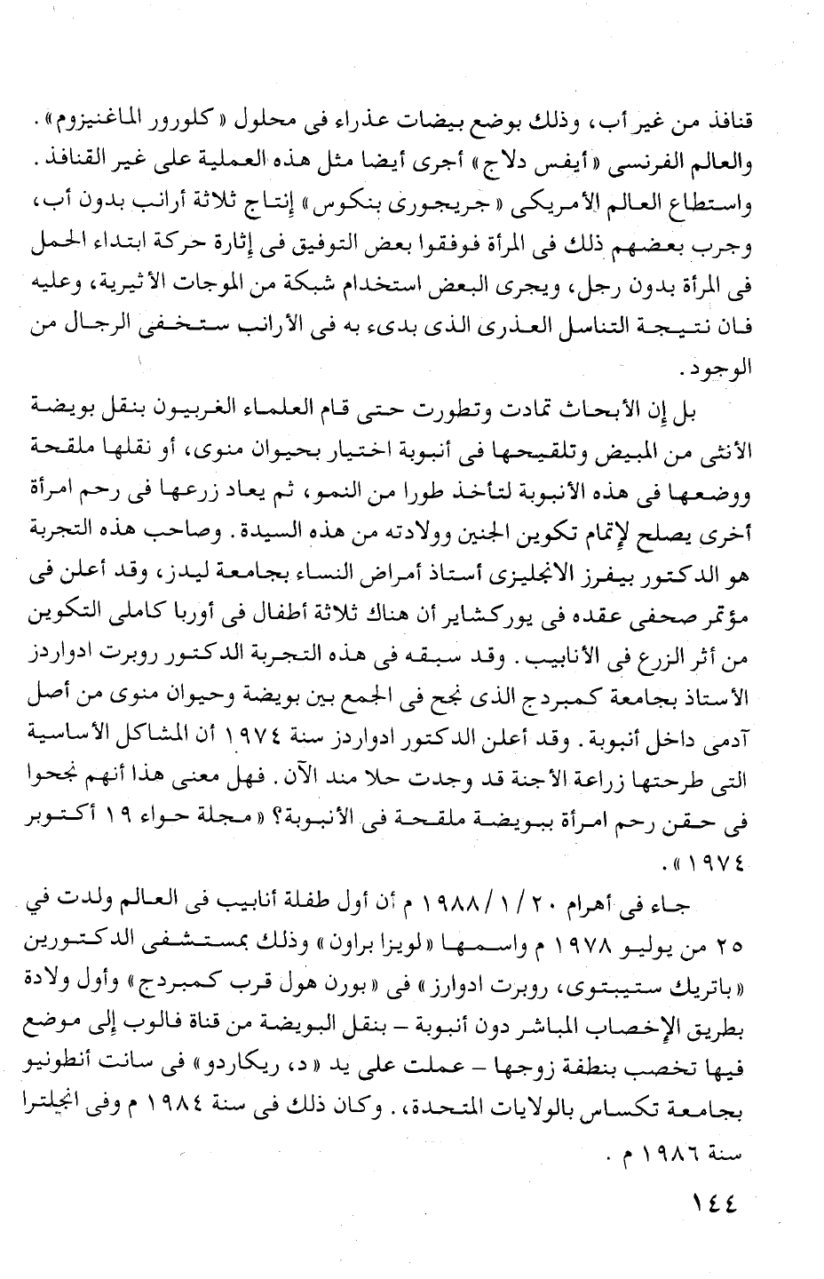 من أثر الزرع فى الأ نابيب. وقد سبقه فى هذه التجربة الدكتور روبرت ادوارفىز