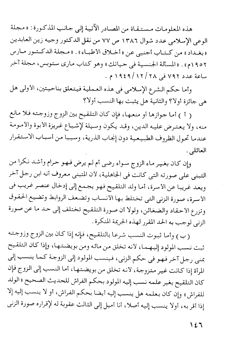 (ب) وأما ثبوت النسب شرعا بالتلقيح، فإنه إذا كان بين الزوج وزوجته