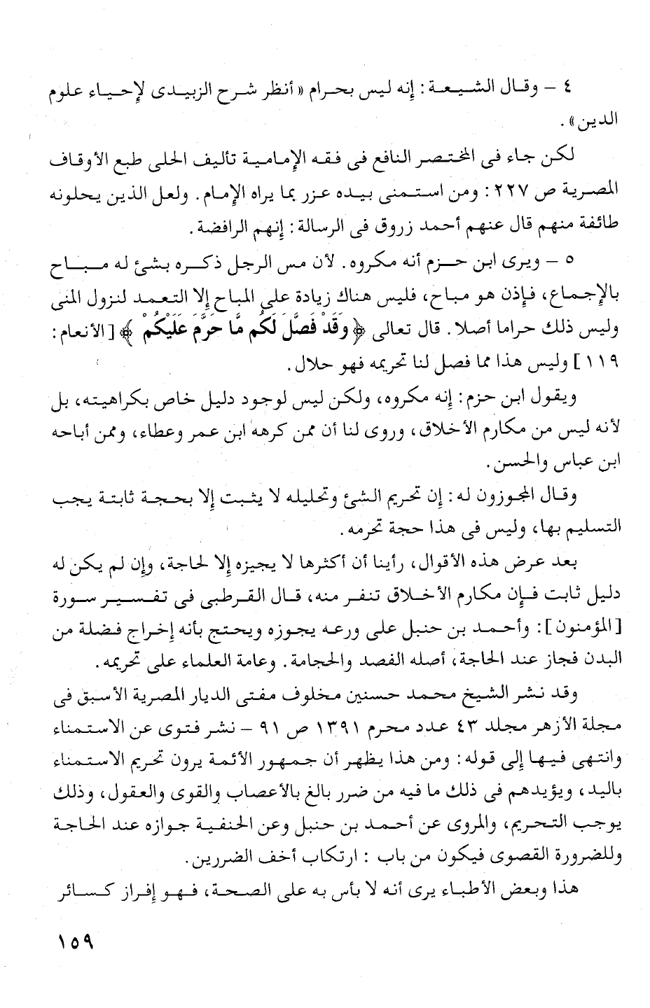 4 - وقال الشيعة: إنه ليس بحرام " أنظر شرح الزبيدى لإحياء علوم