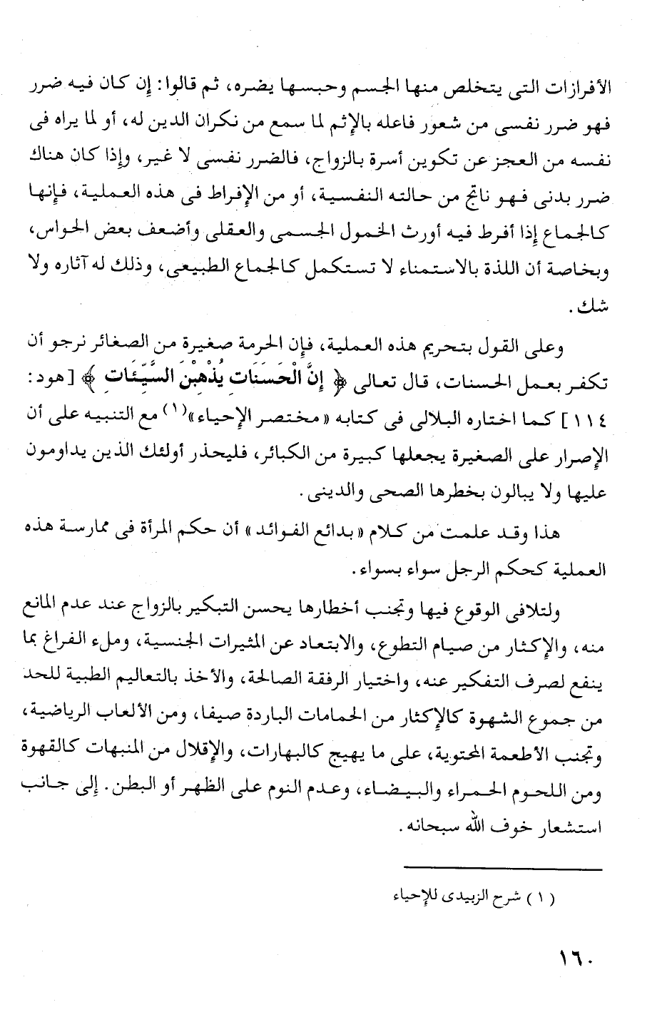 ضرر بدنى فهو نابخ من حالته النفسية، أو من الإفراط فى هذه العملية، فإنها