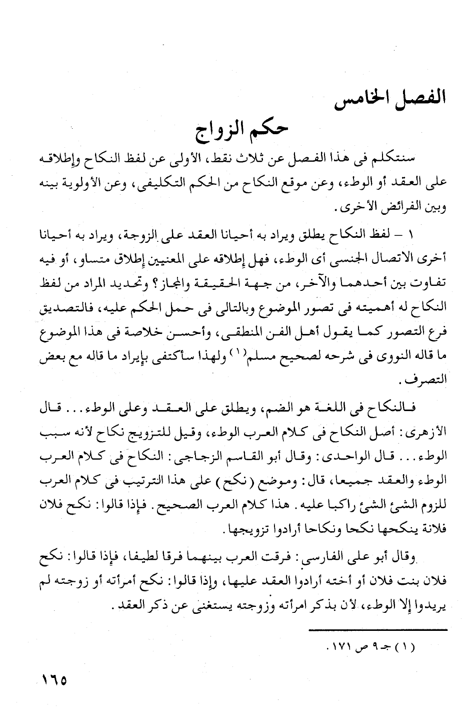 سنتكلم فى هذا الفصل عن ثلاث نقط، الأولى عن لفظ النكاح وإطلاقه