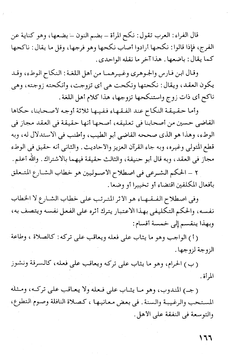 (ب) الحرام، وهو ما يثاب على تركه ويعاقب على فعله، كالسرقة ونشوز