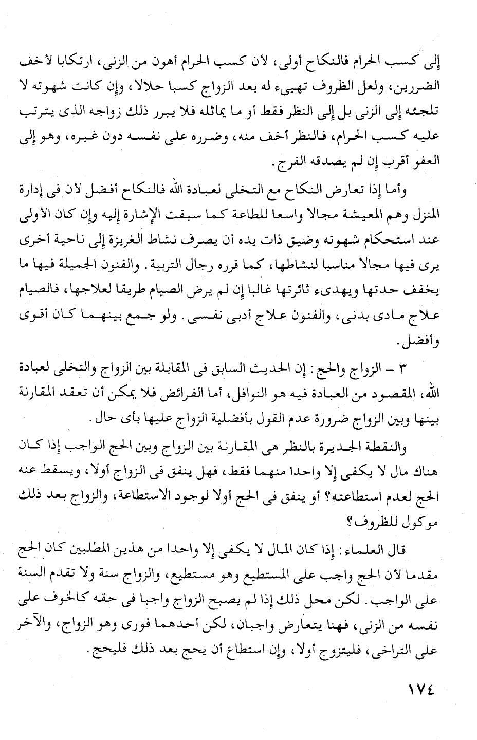 والنقطة الجديرة بالنظر هى المقارنة بين الزواج وبين الحج الواجب إذا كان