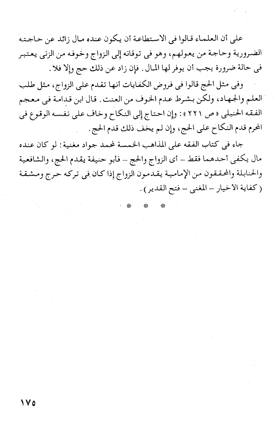 الضرورية وحاجة من يعولهم، وهو فى توقانه إلى الزواج وخوفه من الزنى يعتبر
