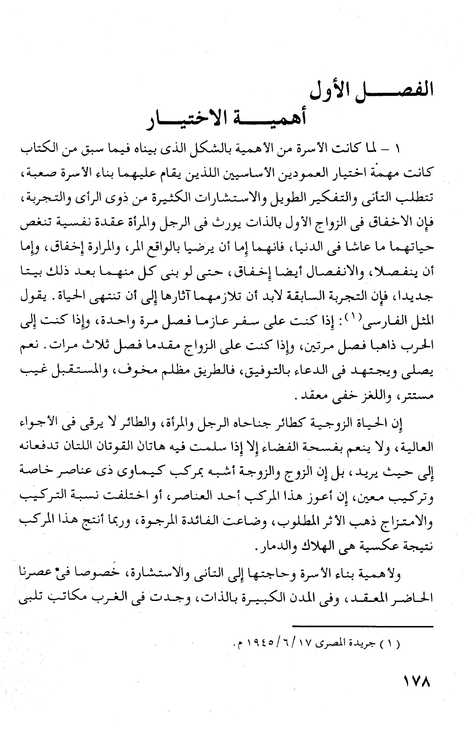 ولا! همية بناء الأسرة وحاجتها إلى الطنى والاستشارة، خصوصا فى عصرنا