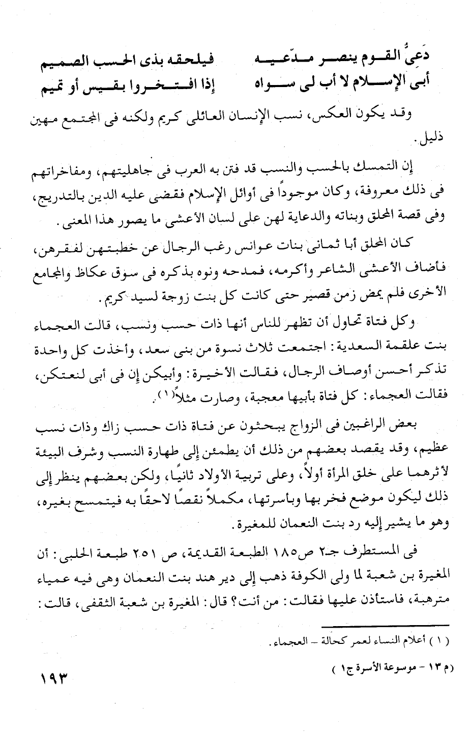 إن التمسك بالحسمب والنسب قد فتن به العرب فى جاهليتهم، ومفاخراتهم