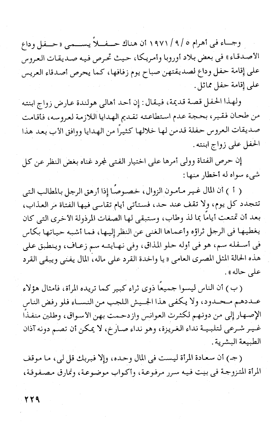 (ب) أن الناس ليسوا جميعا ذوى ثراء كبير كما تريده المرأة، فأمثال هؤلأ
