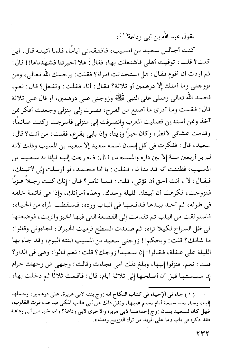 ما شأنك؟ قلت: ويحكم!! زوجنى سعيد بن المسيب ابنته اليوم، وقد جاء بها