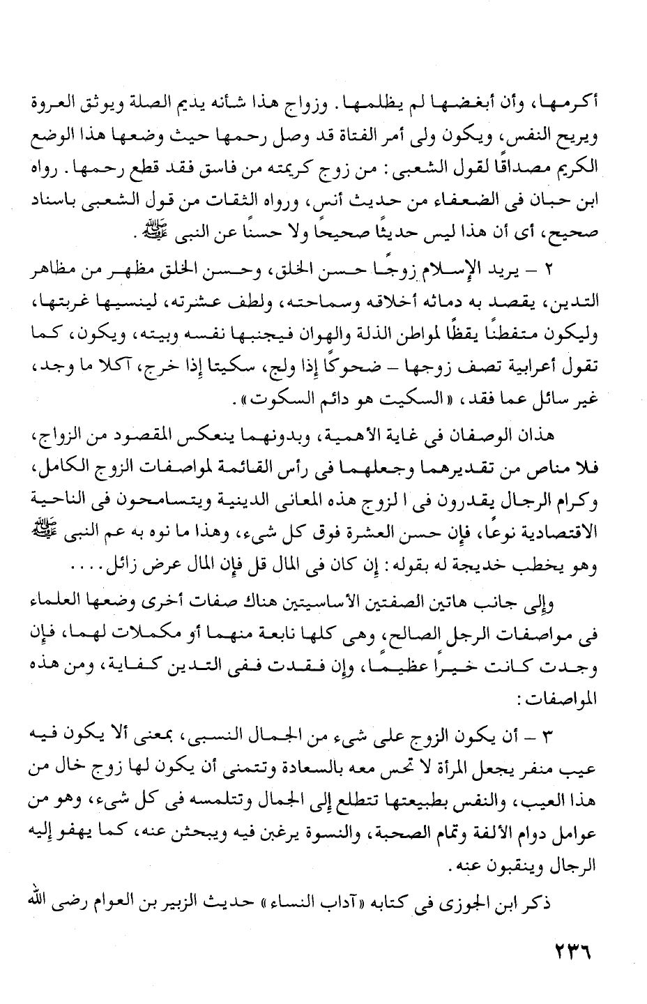 3 - أن يكون الزوج على شىء من الجمال النسبى، بمعنى ألا يكون فيه