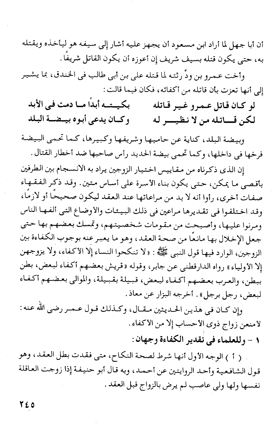 إلى أنها تعزت بأن قاتله من أكفائه، فكان فيما قالت: