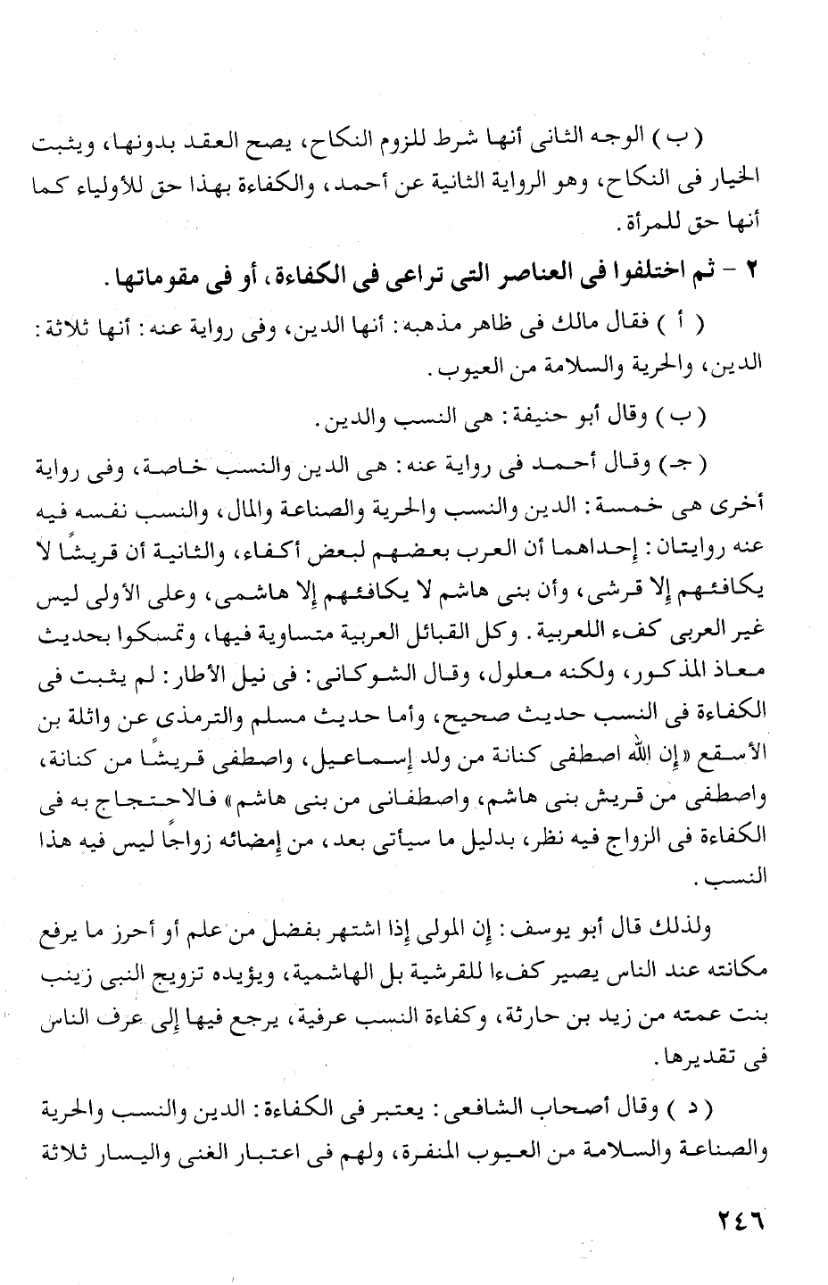 غير العربى كفء اللعربية. وكل القبائل العربية متساوية فيها، وتمسكوا بحديث