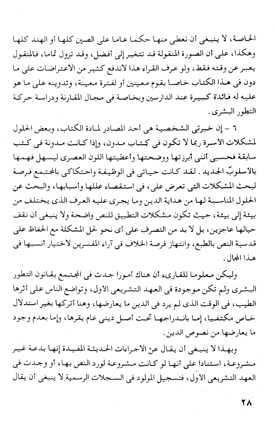 وليكن معلوما للقارىء أن هناك أمورا جدت فى المجتمع بقانون التطور