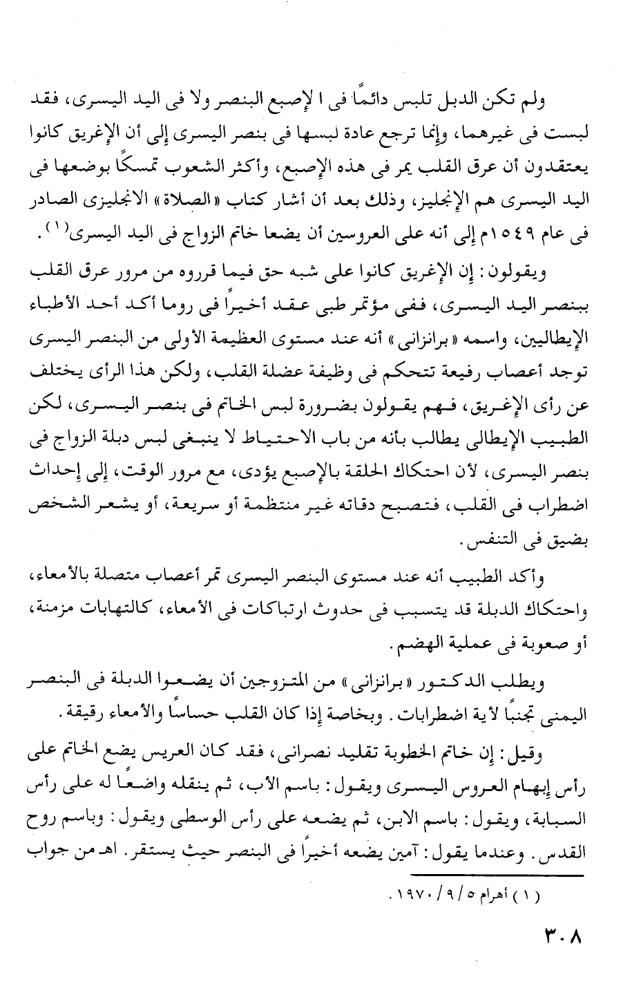 فى عام 549 1 م إلى أنه على العروسين أن يضعا خاتم الزواج فى اليد اليسرى (1).