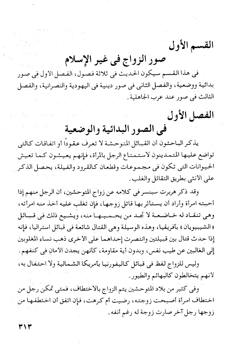 وقد ذكر هربرت سبنسر فى كلامه عن زواج المتوحشين، أن الرجل منهم إذا