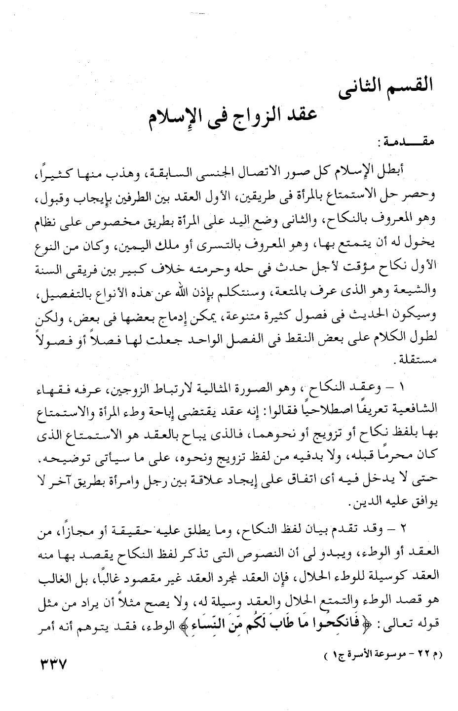 وحصر حل الاستمتاع بالمرأة فى طريقين، الأول العقد بين الطرفين بإيجاب وقبول،