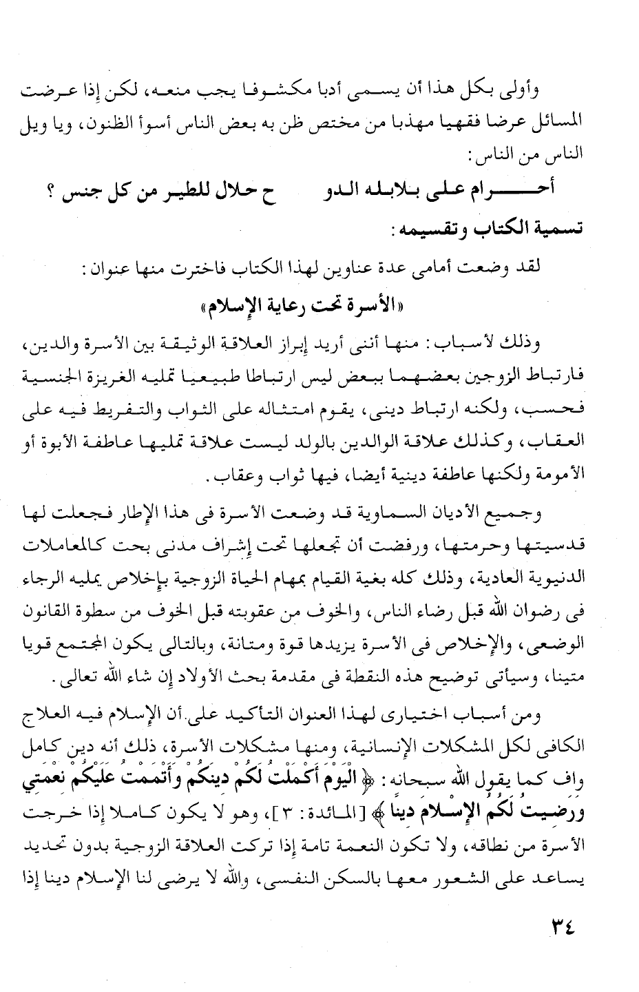 الكافى لكل المشكلات الإنسانية، ومنها مشكلات الأسرة، ذلك أنه دين كامل
