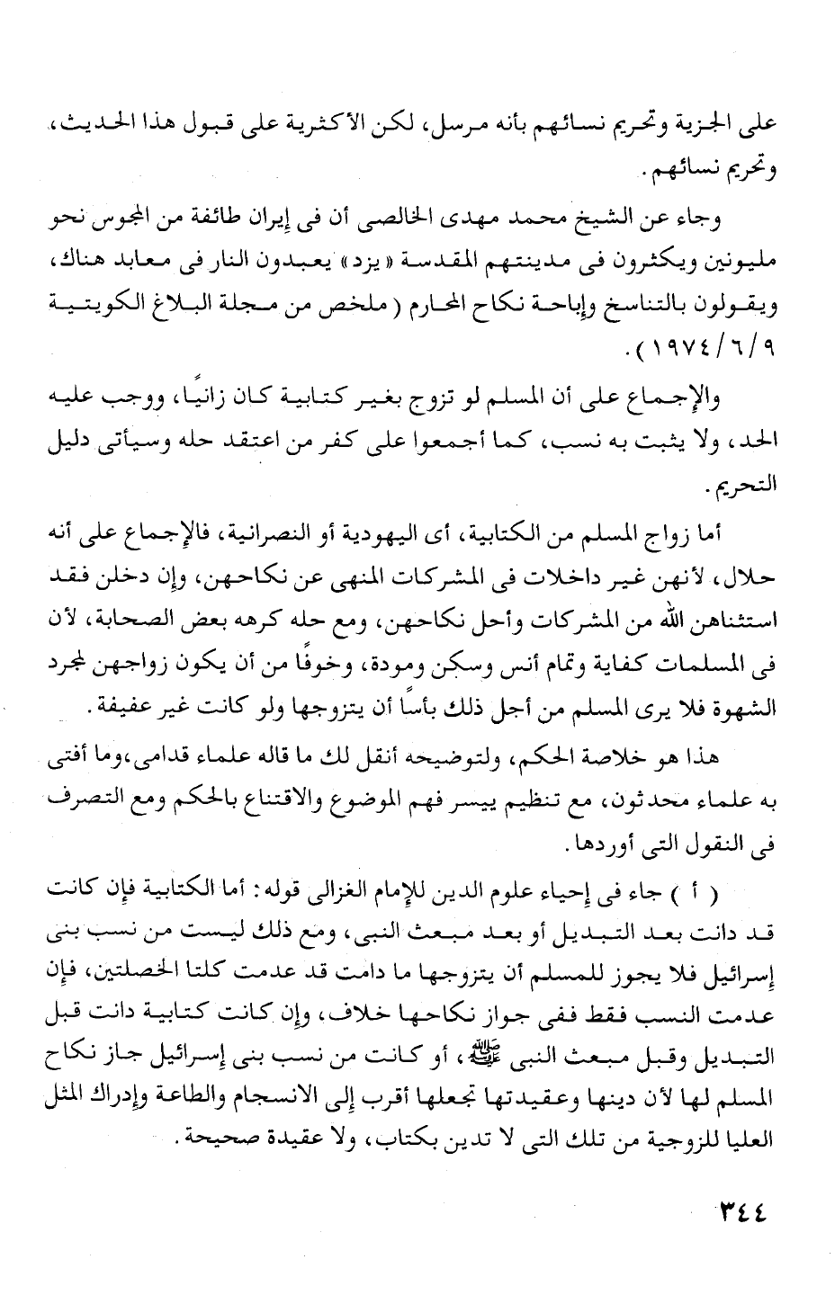 (أ) جاء فى إحياء علوم الدين للإمام الغزالى قوله: أما الكتابية فإن كانت