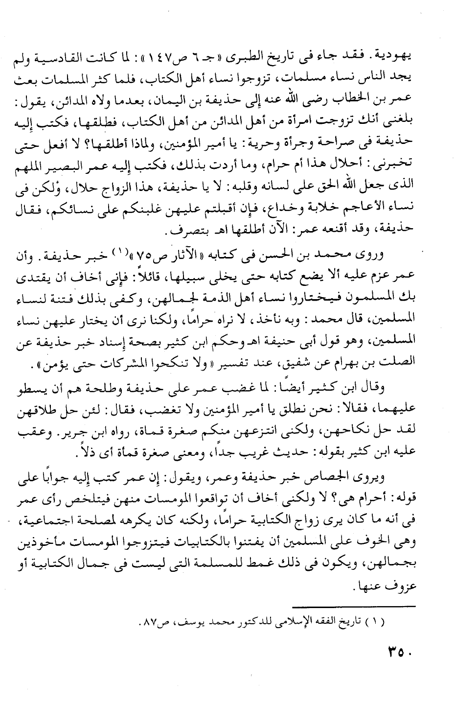 فى أنه ما كان يرى زواج الكتابية حراما، ولكنه كان يكرهه لمصلحة اجتماعية، -