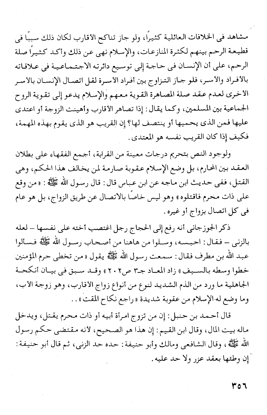 قال أحمد بن حنبل: إن من تزوج امرأة أبيه أو ذات محرم يقتل، ويدخل