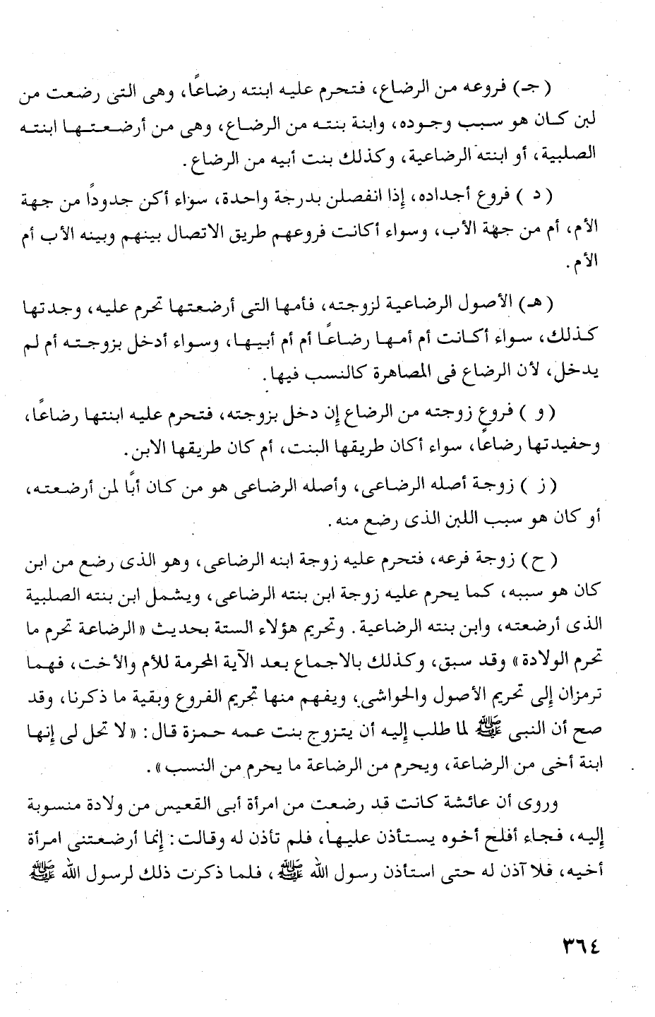 (ح) زوجة فرعه، فتحرم عليه زوجة ابنه الرضاعى، وهو الذى رضع من ابن