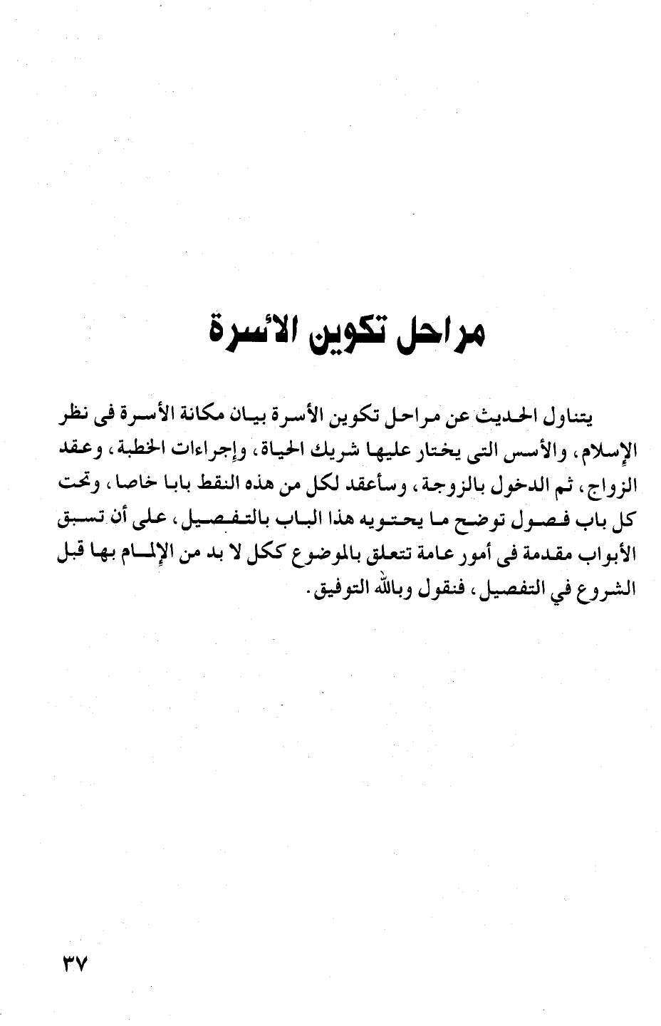 يتناول الحديث عن مراحل تكوين الأسرة بيان مكانة الأسرة فى نظر