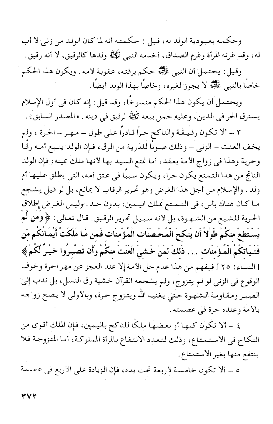 4 - ألا تكون كلها أو بعضها ملكا للناكح باليمين، فإن الملك أقوى من