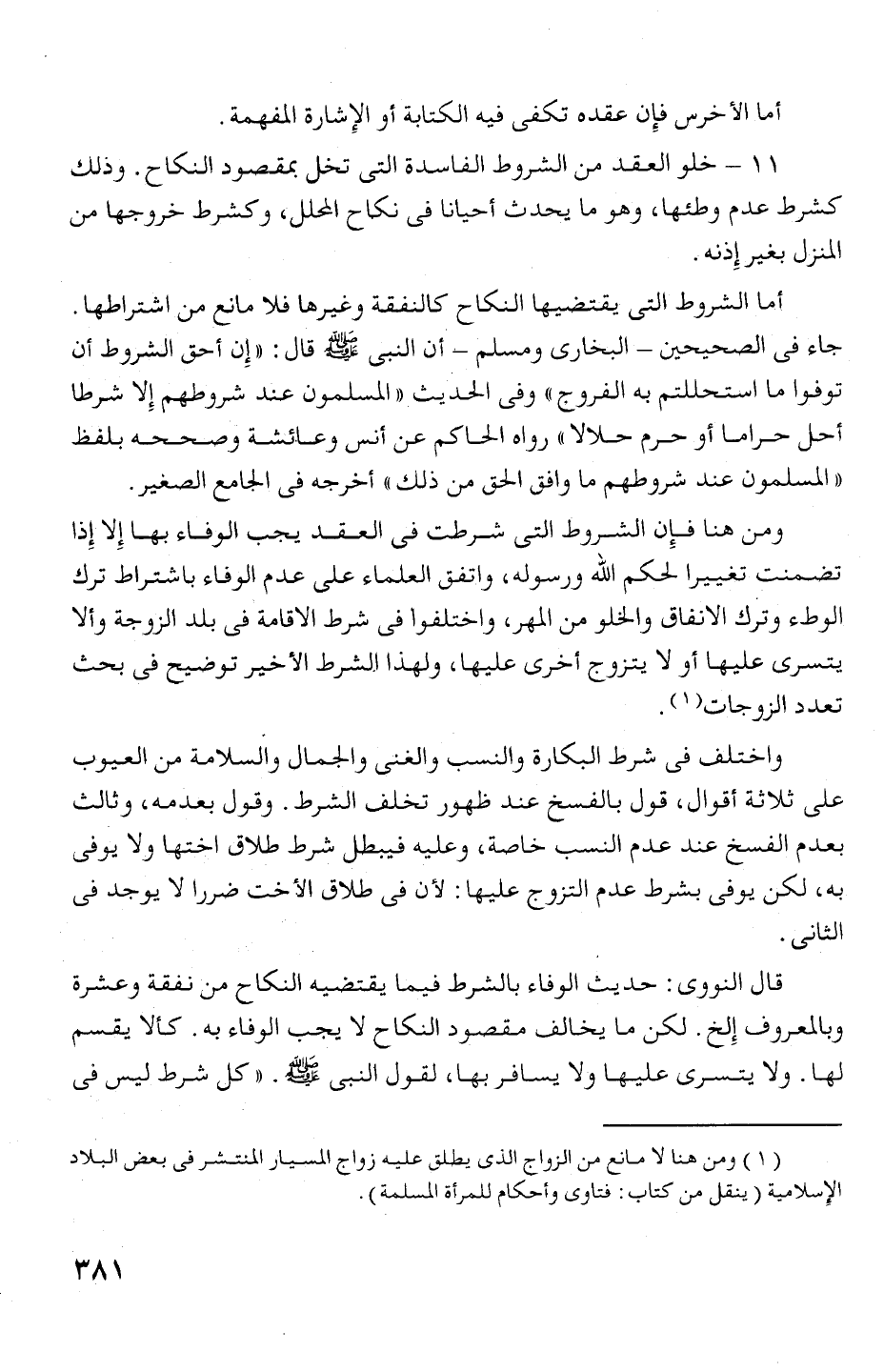 (1) ومن هنا لا مانع من الزواج الذى يطلق عليه زواج المسيار المنتشر فى بعض البلاد