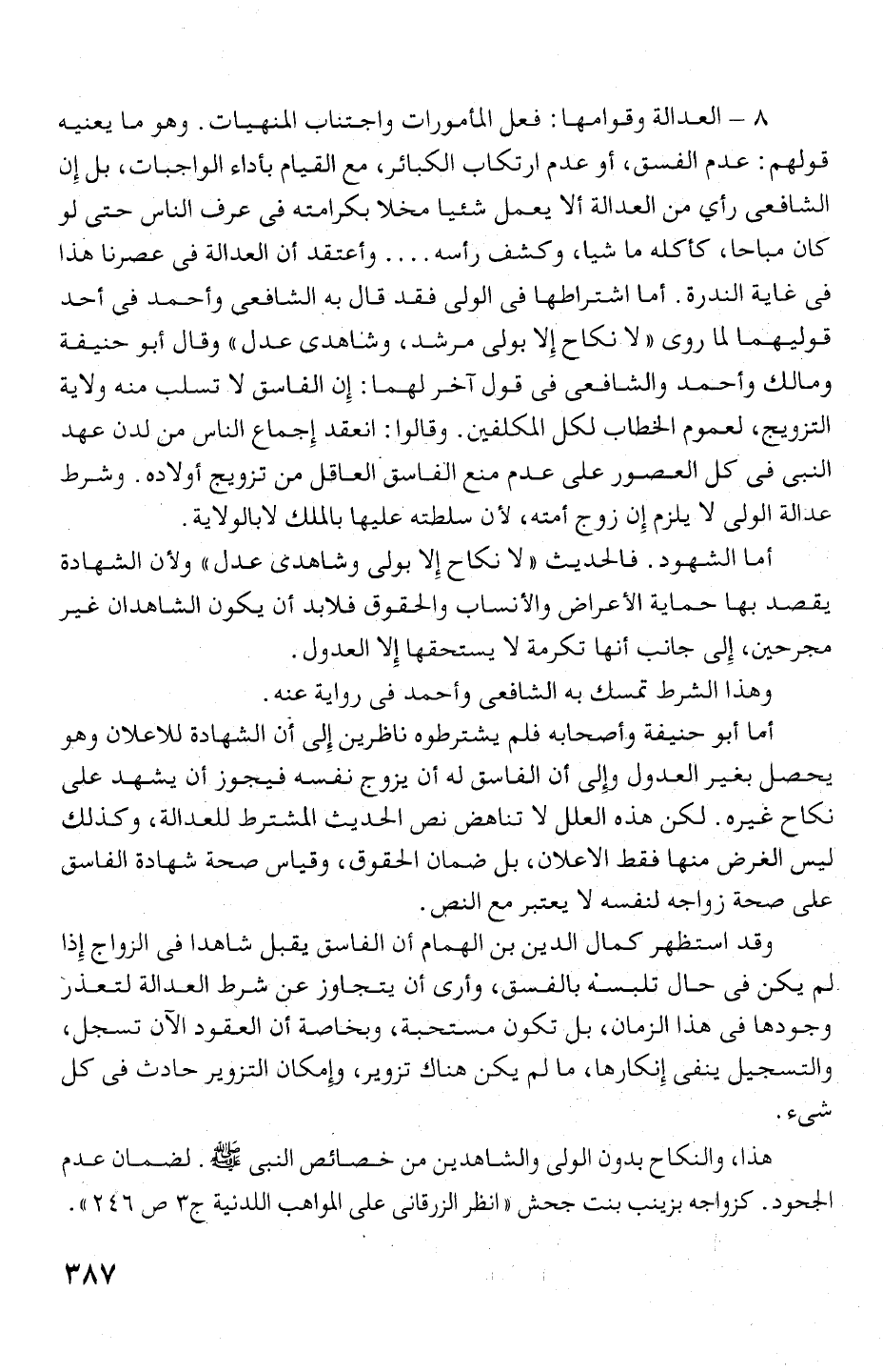 8 - العدالة وقوامها: فعل المأمورات واجتناب المنهيات. وهو ما يعنيه