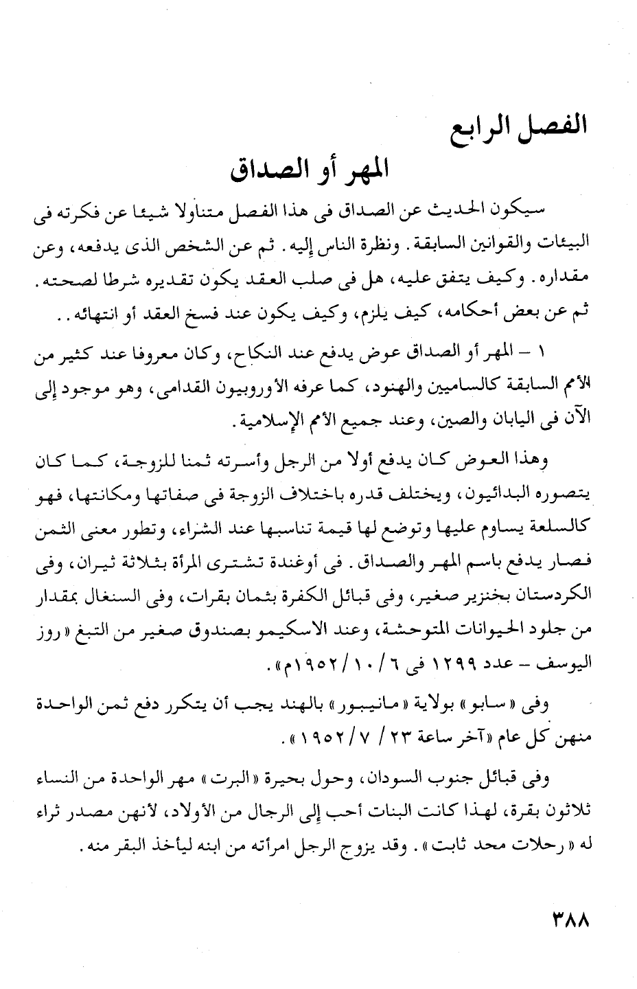 سيكون الحديث عن الصداق فى هذا الفصل متنا. ولا شيئا عن فكرته فى