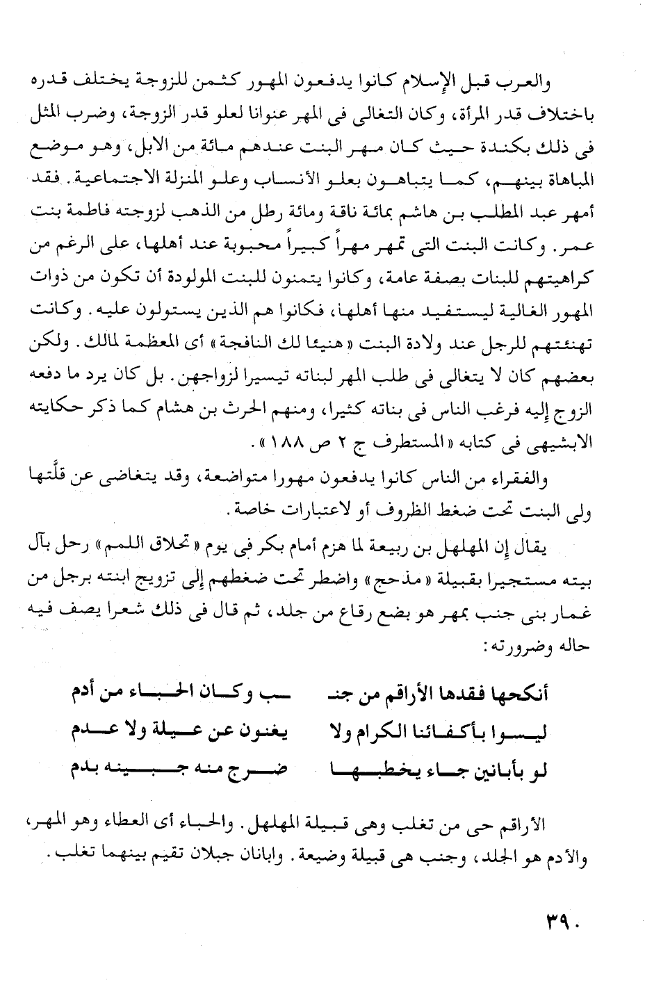 والعرب قبل الإسلام كانوا يدفعون المهور كثمن للزوجة يختلف قدره
