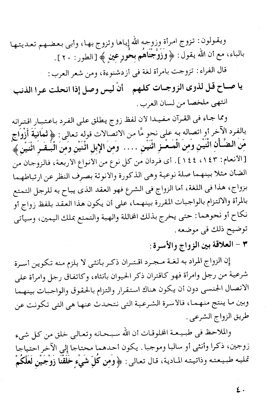 بالفرد الاخر أو اتصاله به على نحو ما من الاتصالات قوله تعالى ء (ثمانية أزواج