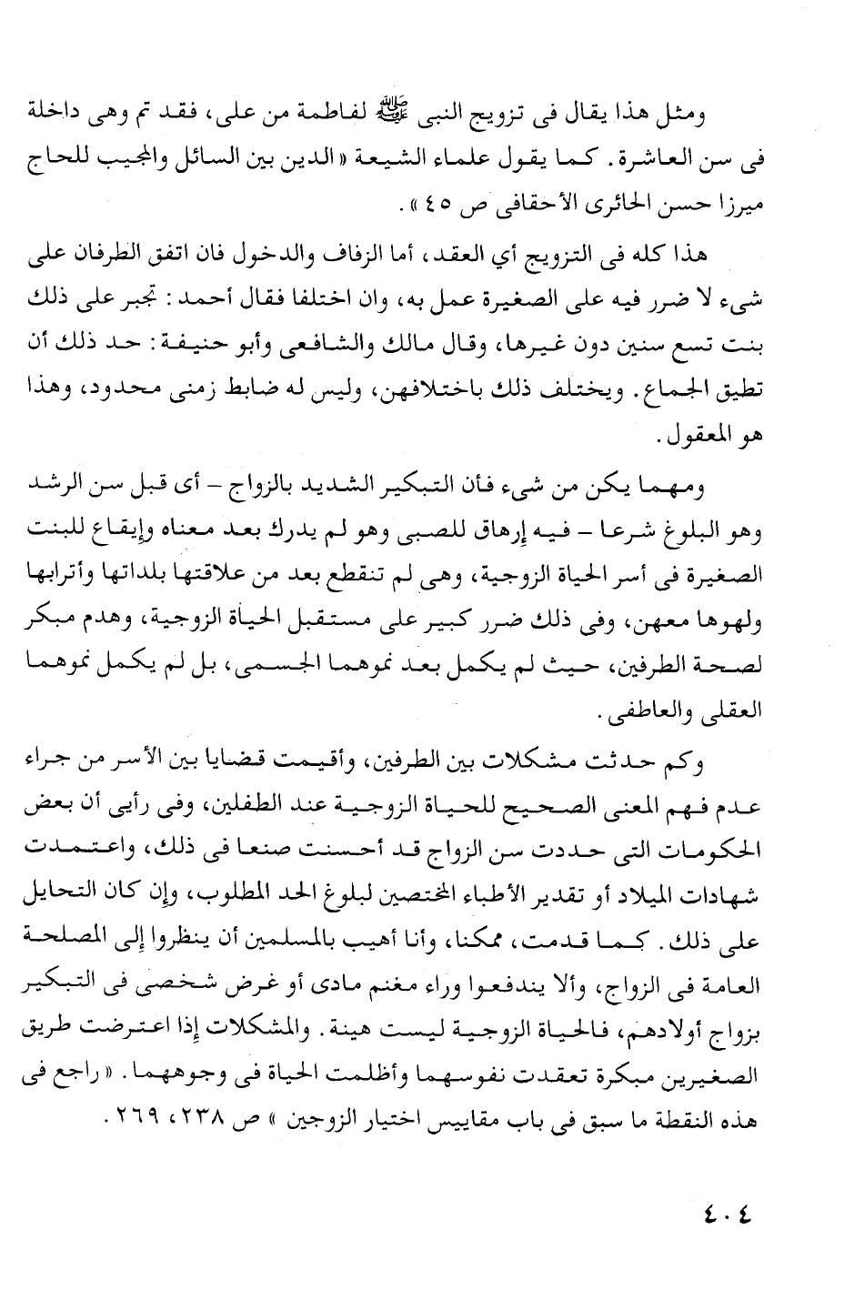 فى سن العاشرة. كما يقول علماء الشيعة " الدين بين السائل والمجيب للحاج