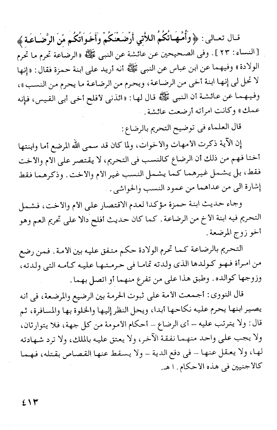 أ النساء: 23 ا. وفى الصحيحين عن عائشة عن النبى يمط أ (الرضاعة تحرم ما تحرم