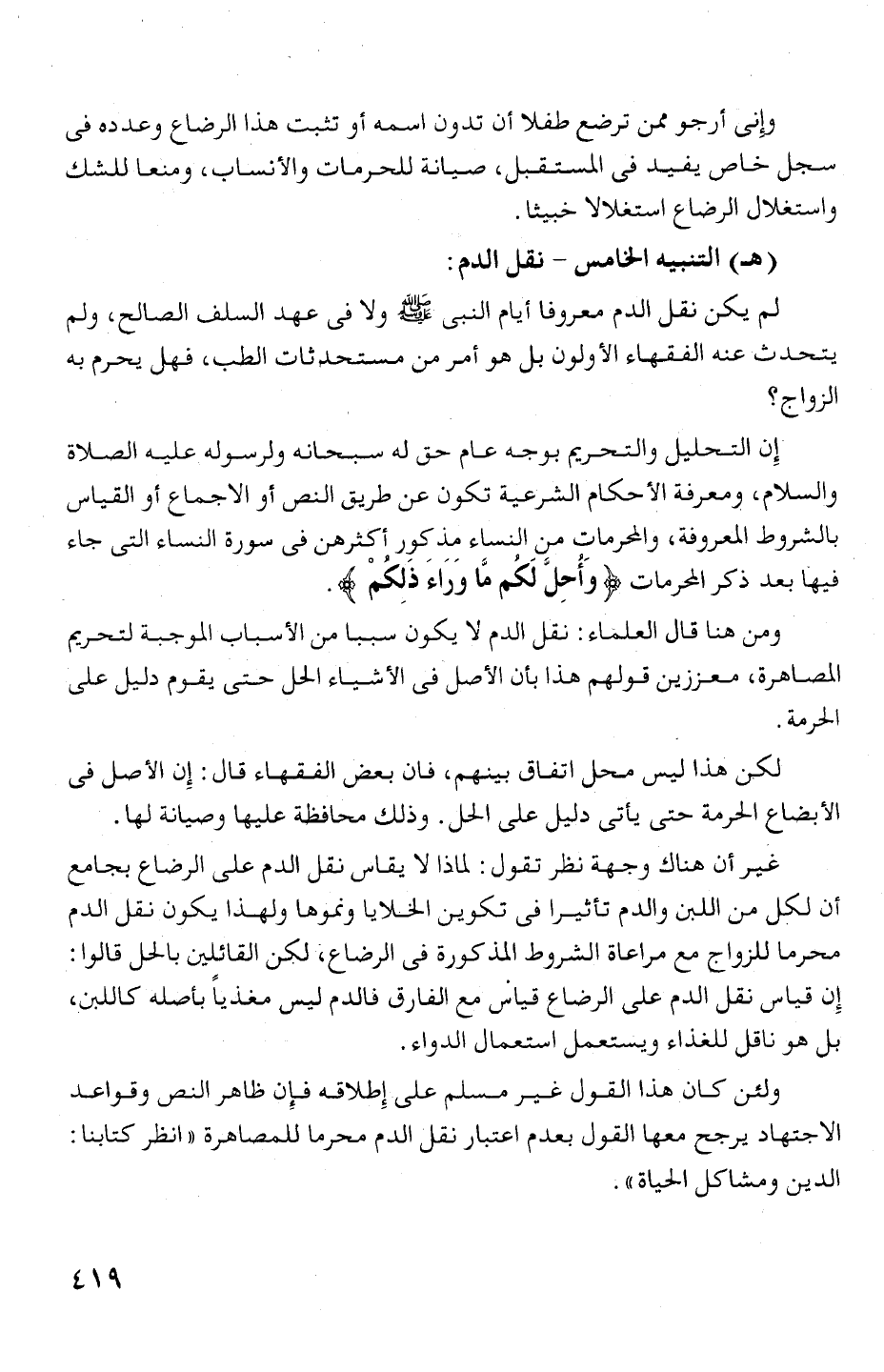 الاجتهاد يرجح معها القول بعدم اعتبار نقل الدم محرما للمصاهرة " انظر كتابنا: